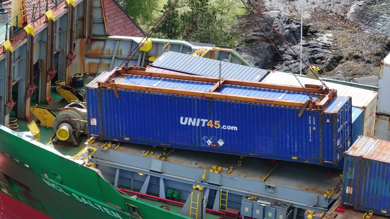 Det 135 meter lange skipet sto med rundt 2000 tonn i baugen. Det første som blir gjort, er å fjerne konteinere fra skipet.