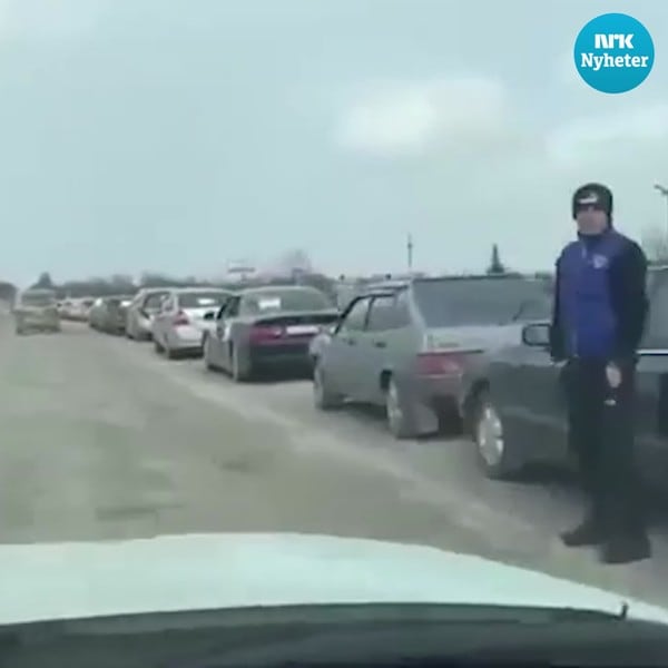 VEISPERRINGER: Sivilbefolkningen forsøkte å stanse de russiske kjøretøyene.