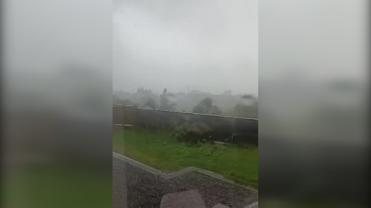 Det kom brått mykje regn og vind på Os laurdag morgon.