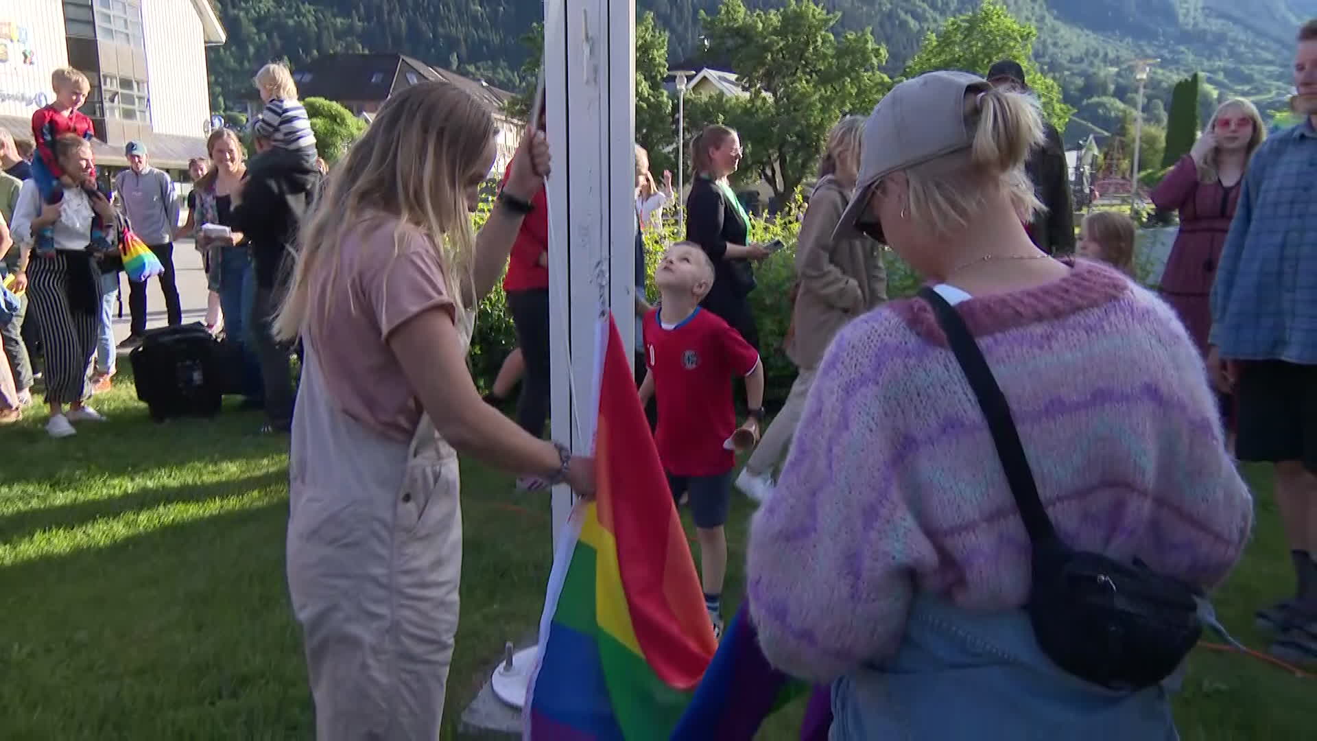 Tysdag 11. juni vart pride-flagget heist ulovleg utanfor rådhuset i Sogndal. Om lag 100 menneske møtte opp til markeringa.