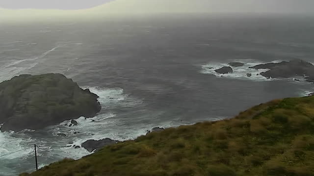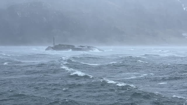 Vind på Utsira i Rogaland, der ferja har vore innstilt måndag.