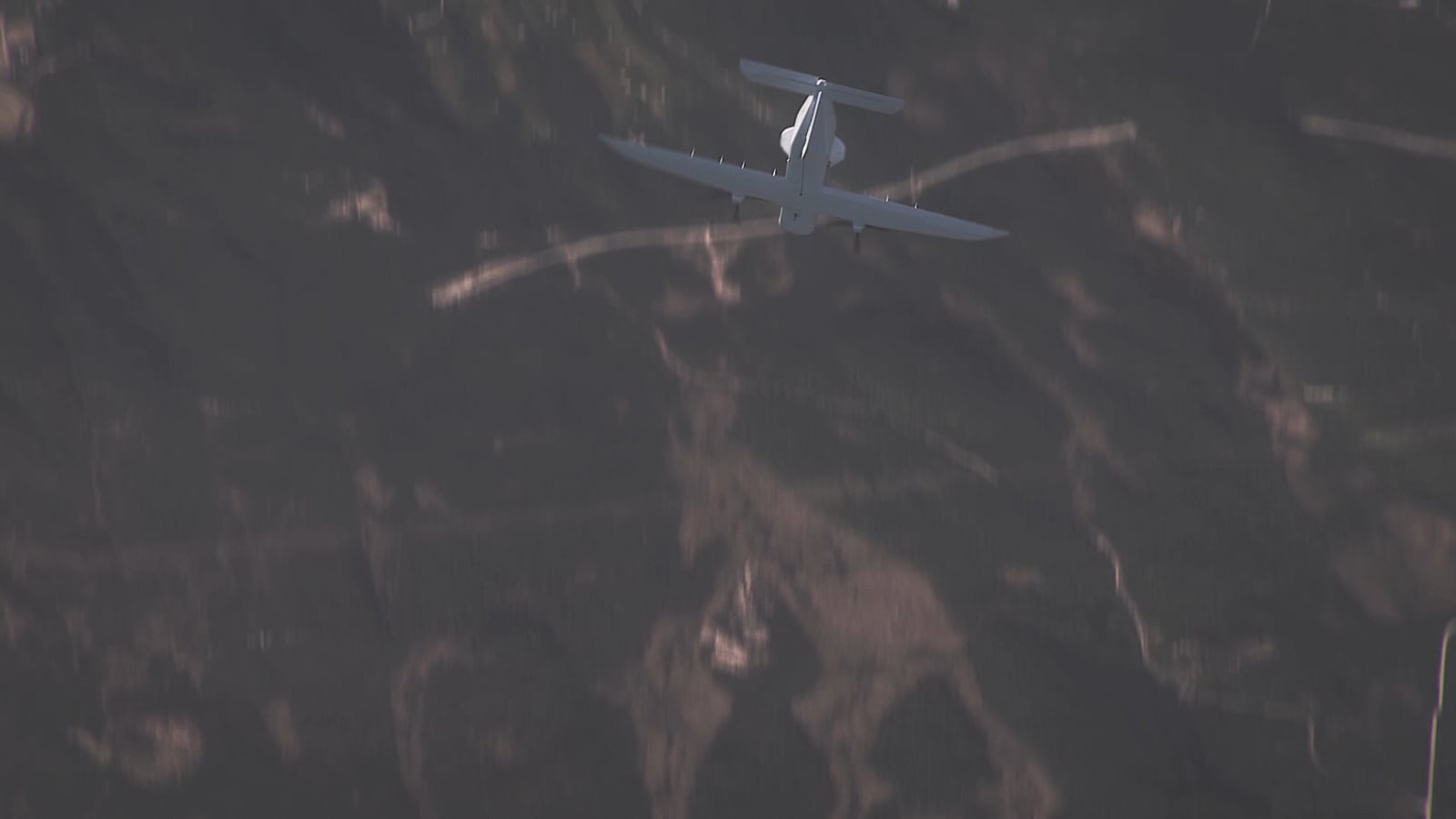 Foto: Einar Breivik / NRKFlyet planer ut av seg selv etter baklengsfallet. Akkurat hvor høyt flyet ligger nå og hvilket av de to stupene læreren er vitne til, er uklart. Men hendelsen kan ha sett slik ut: